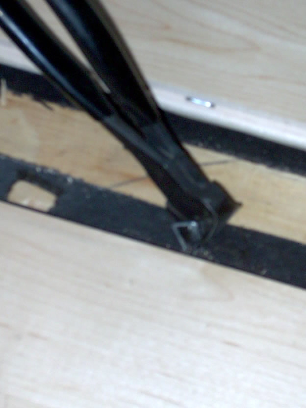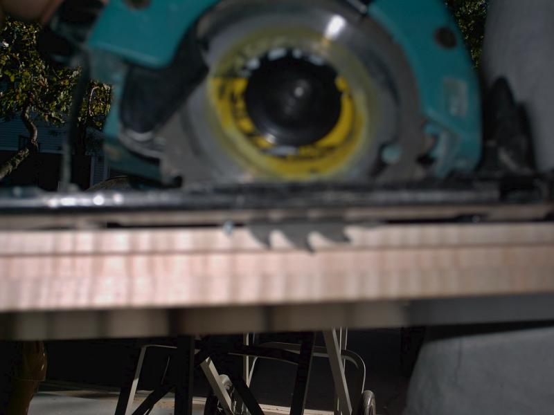 In this picture you can see we have cut off the bottom half of the groove, running the length of the board as well as the end. Make sure you don't ruin the finish of your replacement board when cutting the bottom half of the groove off.