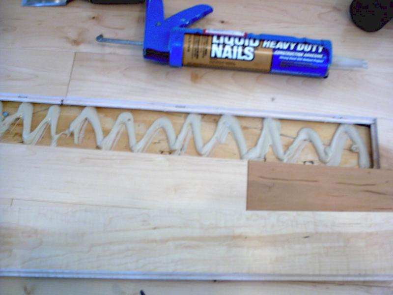 Put a generous zig-zag bead of adhesive on the sub-floor for your replacement board. Be sure not to let the adhesive sit to long,for it can skim over and loose it's adhersion.