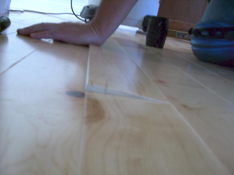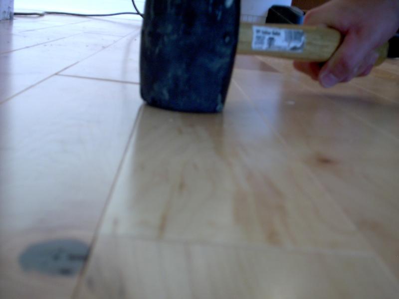 Finally set your replacement board back into position,with the tounge of your replacement board going back into the groove of your existing floor. Pound the board into place with a rubber mallet, making sure it lies evenly with the rest of the surrounding floor. It may help you to work the mallet left to right the length of your replacement board, to get it to fit.
