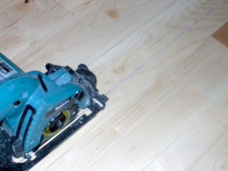 First you must set the depth of your saw to the thickness of your flooring.Cut the length of the board 2 or 3 times being careful not to damage the surrounding floor.Keep a vaccum on hand for easy clean up.